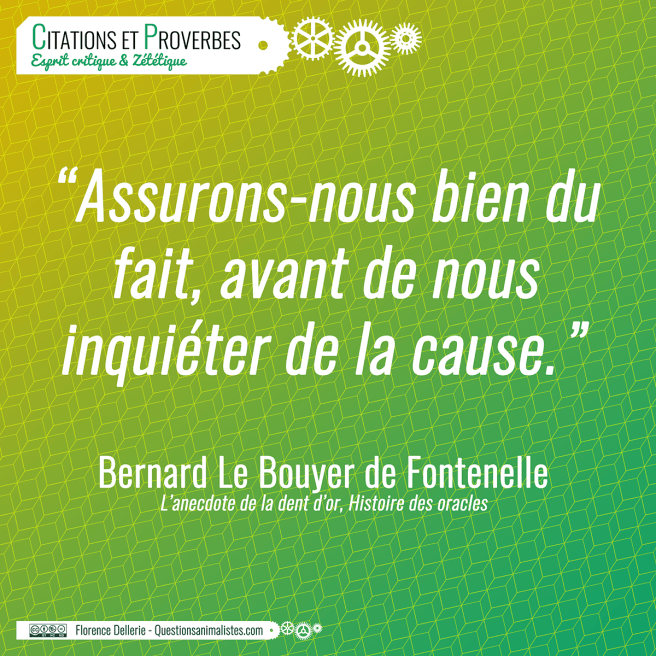 « Assurons-nous bien du fait, avant de nous inquiéter de la cause. » Bernard Le Bouyer de Fontenelle (L’anecdote de la dent d’or, Histoire des oracles)
