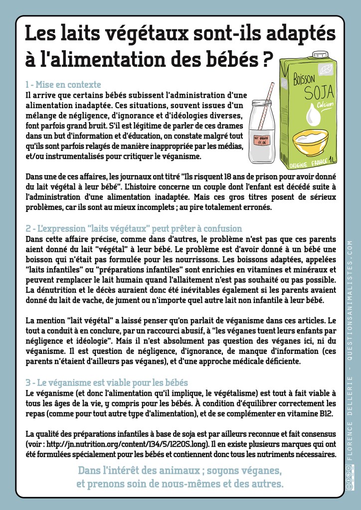 – Article d’origine (« Ils risquent 18 ans de prison pour avoir donné du lait végétal à leur bébé ») : http://www.7sur7.be/7s7/fr/1502/Belgique/article/detail/3158826/2017/05/16/Ils-risquent-18-ans-de-prison-pour-avoir-donne-du-lait-vegetal-a-leur-bebe.dhtml