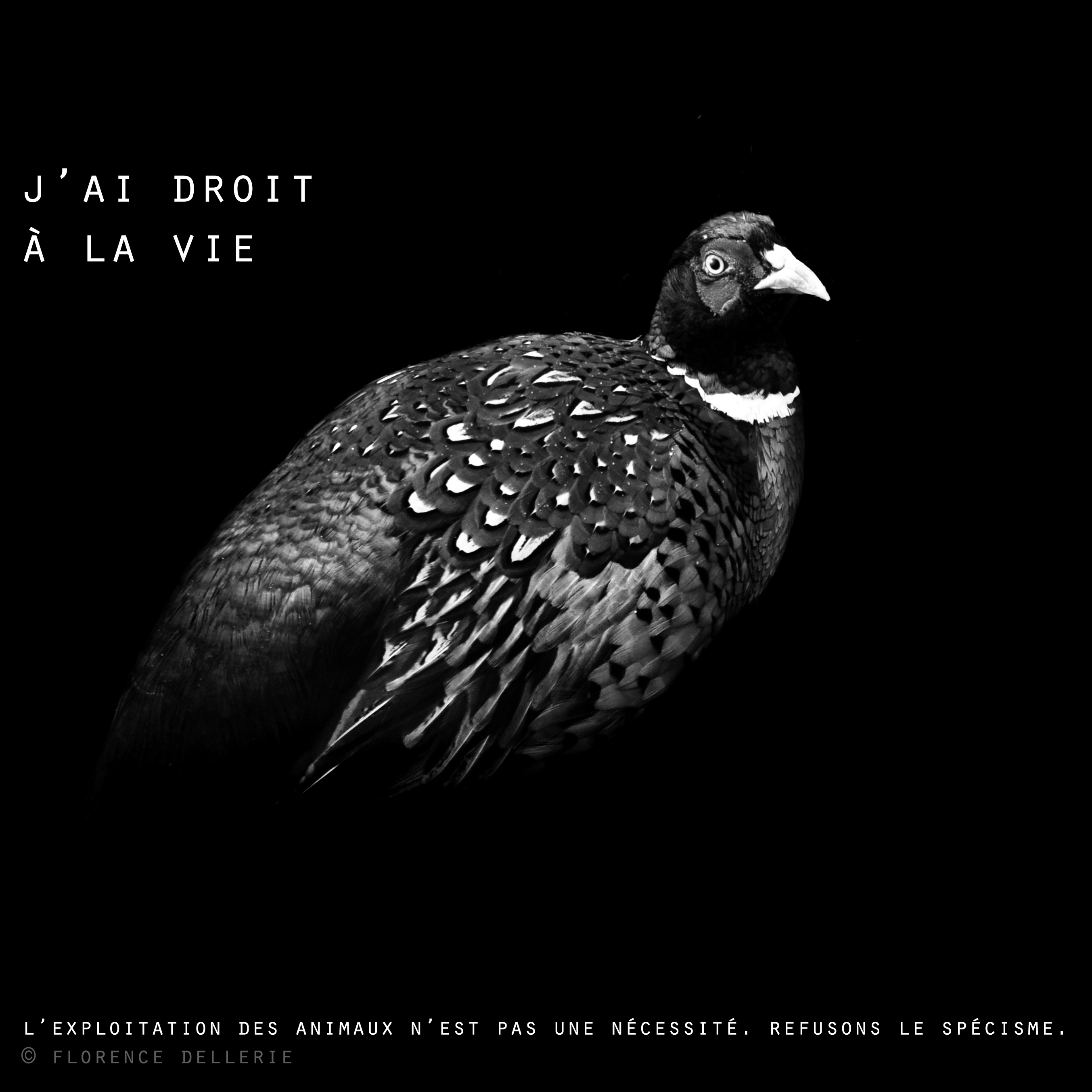 Visuel animaliste « En noir et blanc » – Faisan, Florence Dellerie