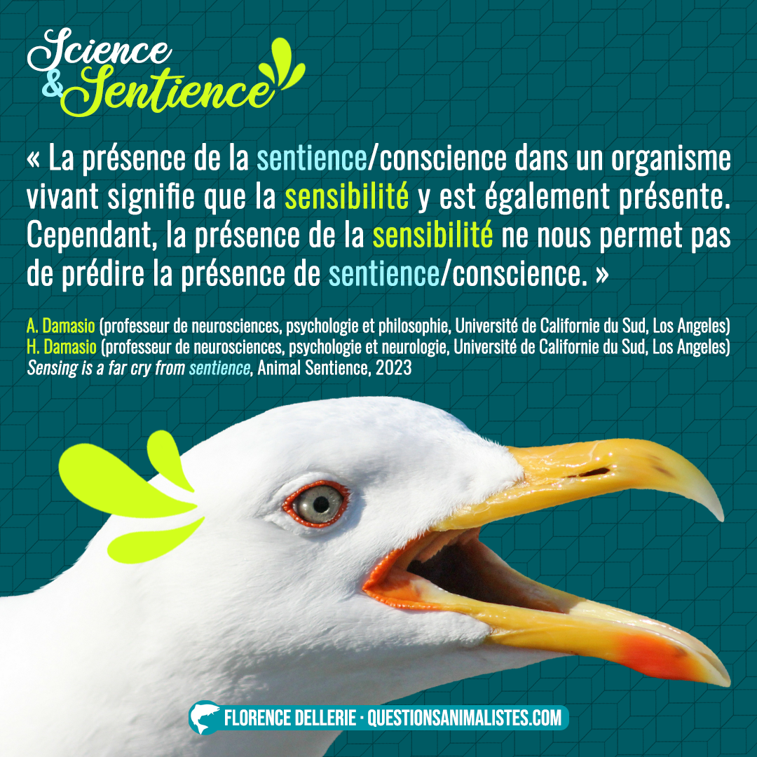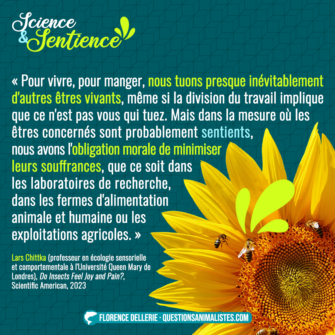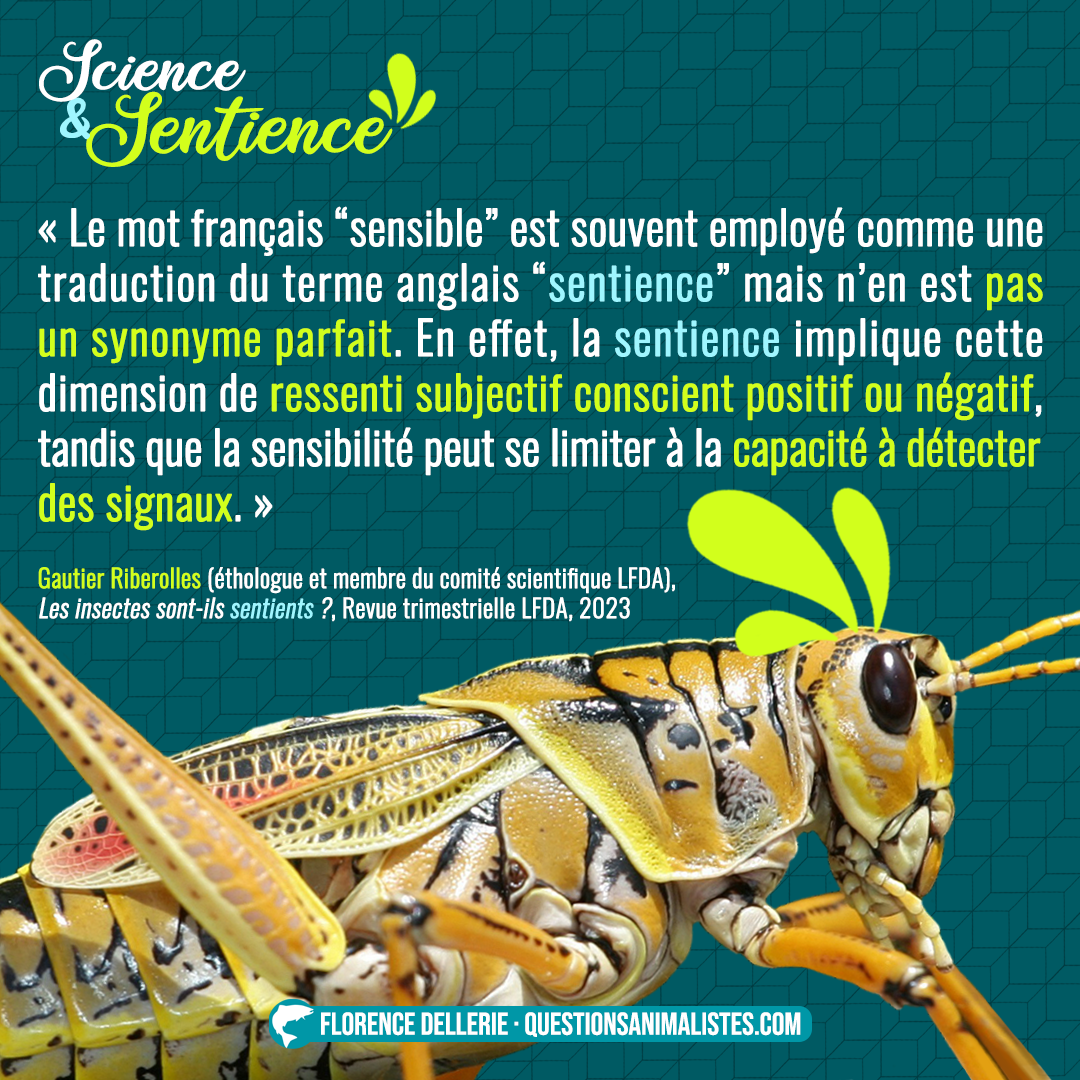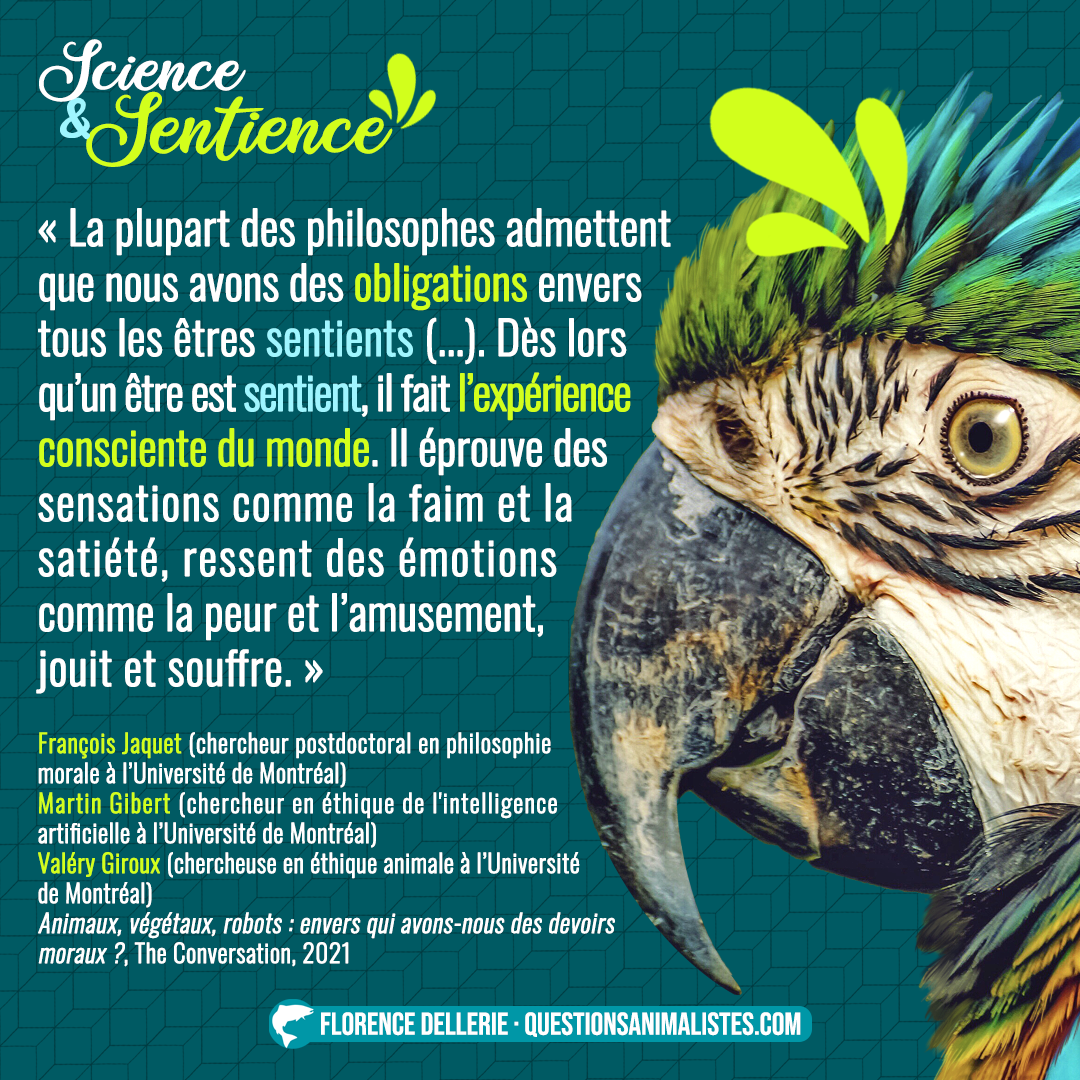 L’objectif de cette série de visuels est de proposer un aperçu des discussions autour de la notion de sentience. Cet aperçu est composé d’extraits de divers documents : études, revues de la littérature, débats, articles, déclarations… toujours produit·es par des chercheur·ses travaillant sur cette notion. L’idée est aussi de rendre accessibles au plus grand nombre des positions scientifiques parfois difficiles d’accès.
