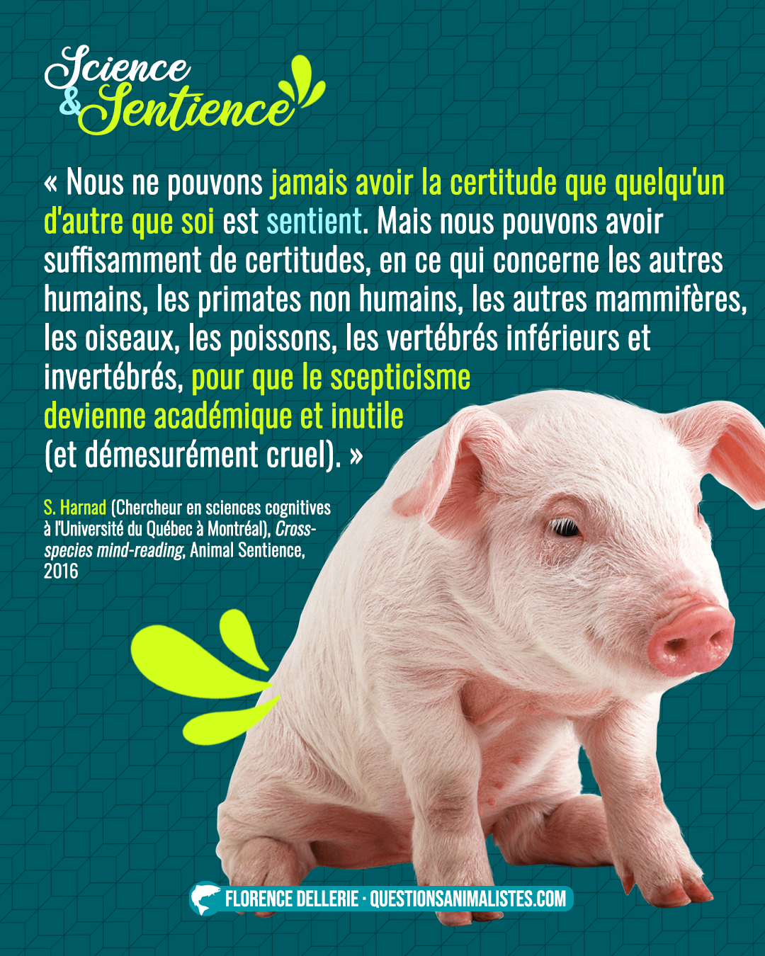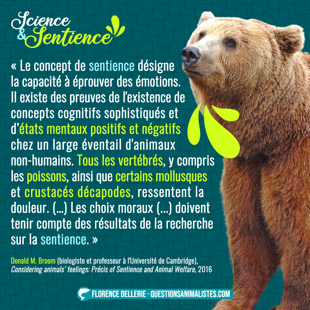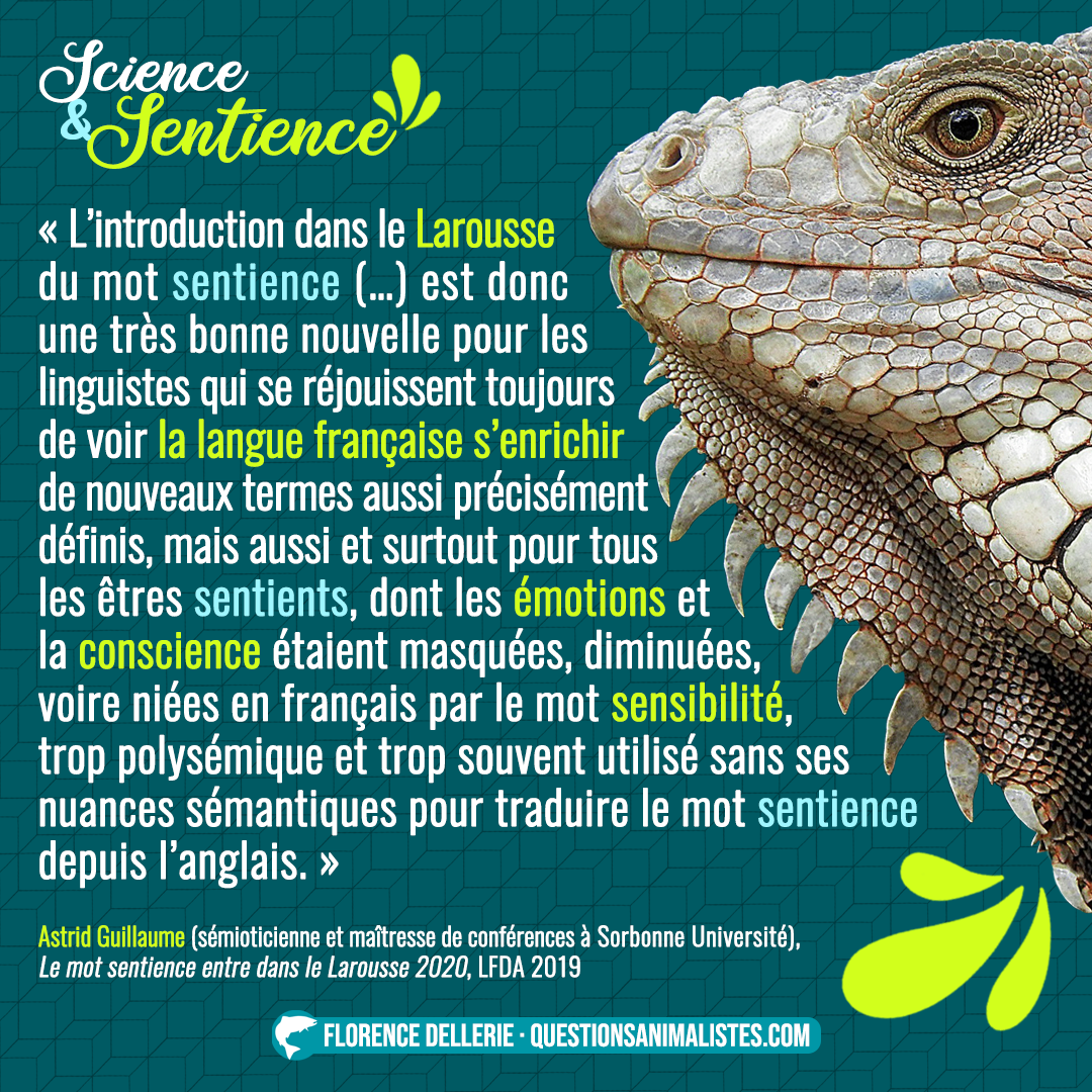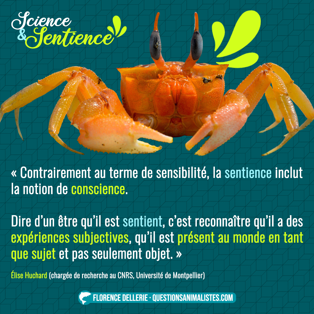 L’objectif de cette série de visuels est de proposer un aperçu des discussions autour de la notion de sentience. Cet aperçu est composé d’extraits de divers documents : études, revues de la littérature, débats, articles, déclarations… toujours produit·es par des chercheur·ses travaillant sur cette notion. L’idée est aussi de rendre accessibles au plus grand nombre des positions scientifiques parfois difficiles d’accès.
